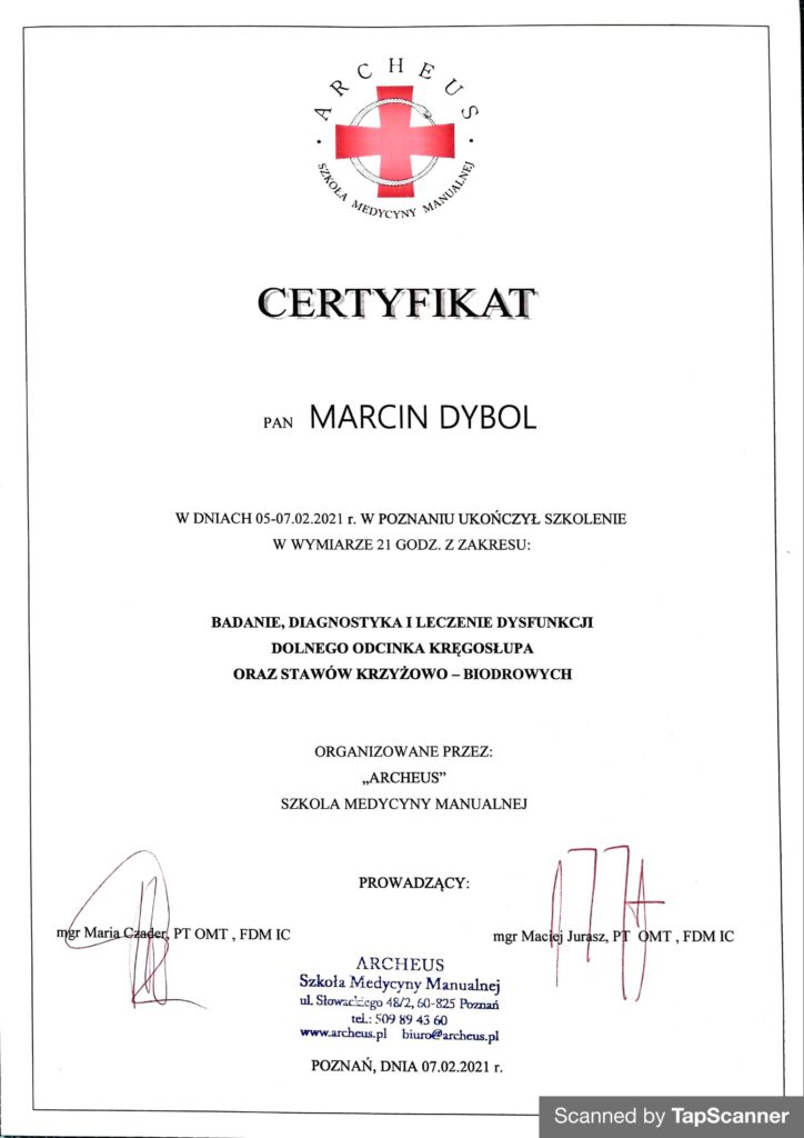 Marcin Dybol – fizjoterapeuta, terapeuta manualny.