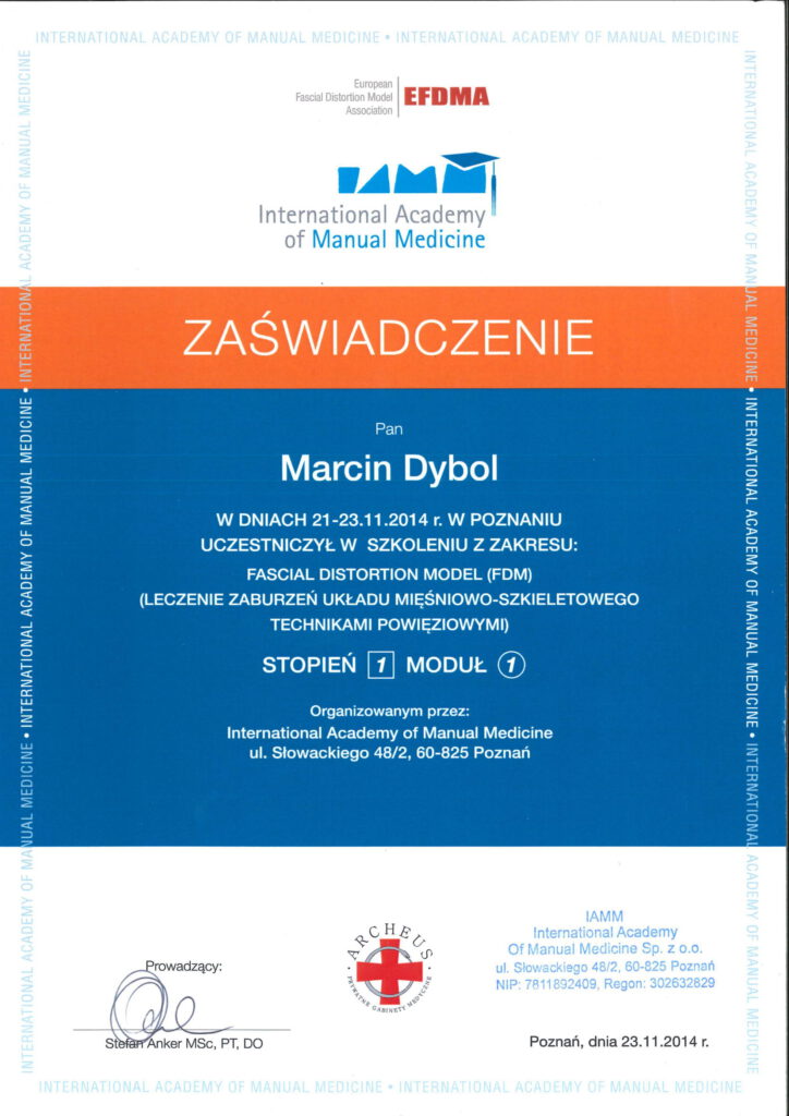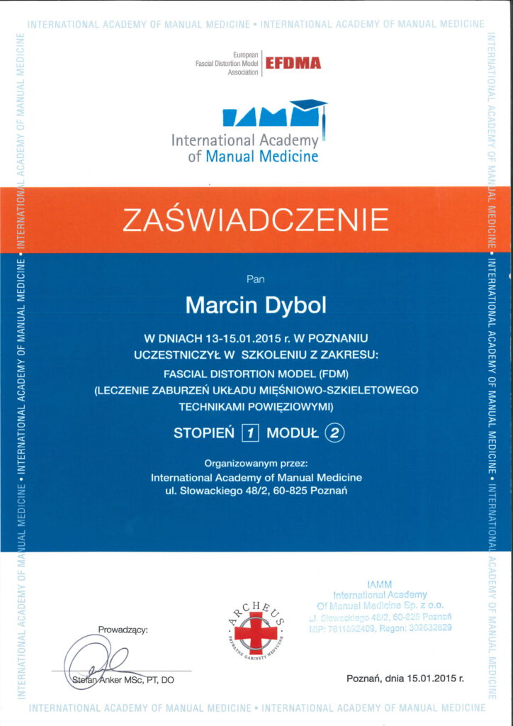 - 2016, 2015, 2014: Metoda Fasical Distortion Model, moduł I-III – zakończona egzaminem. Stefan Anker;