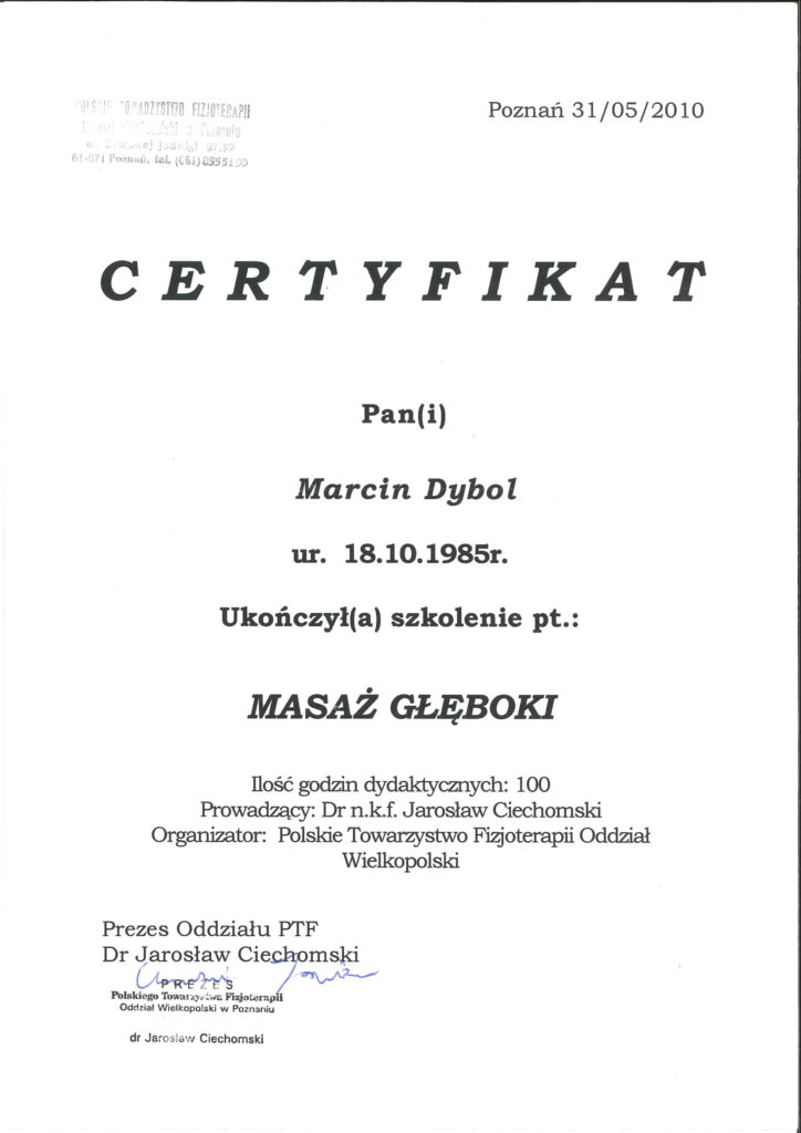 - 2010: Masaż głęboki tkanek miękkich. Jarosław Ciechomski.
