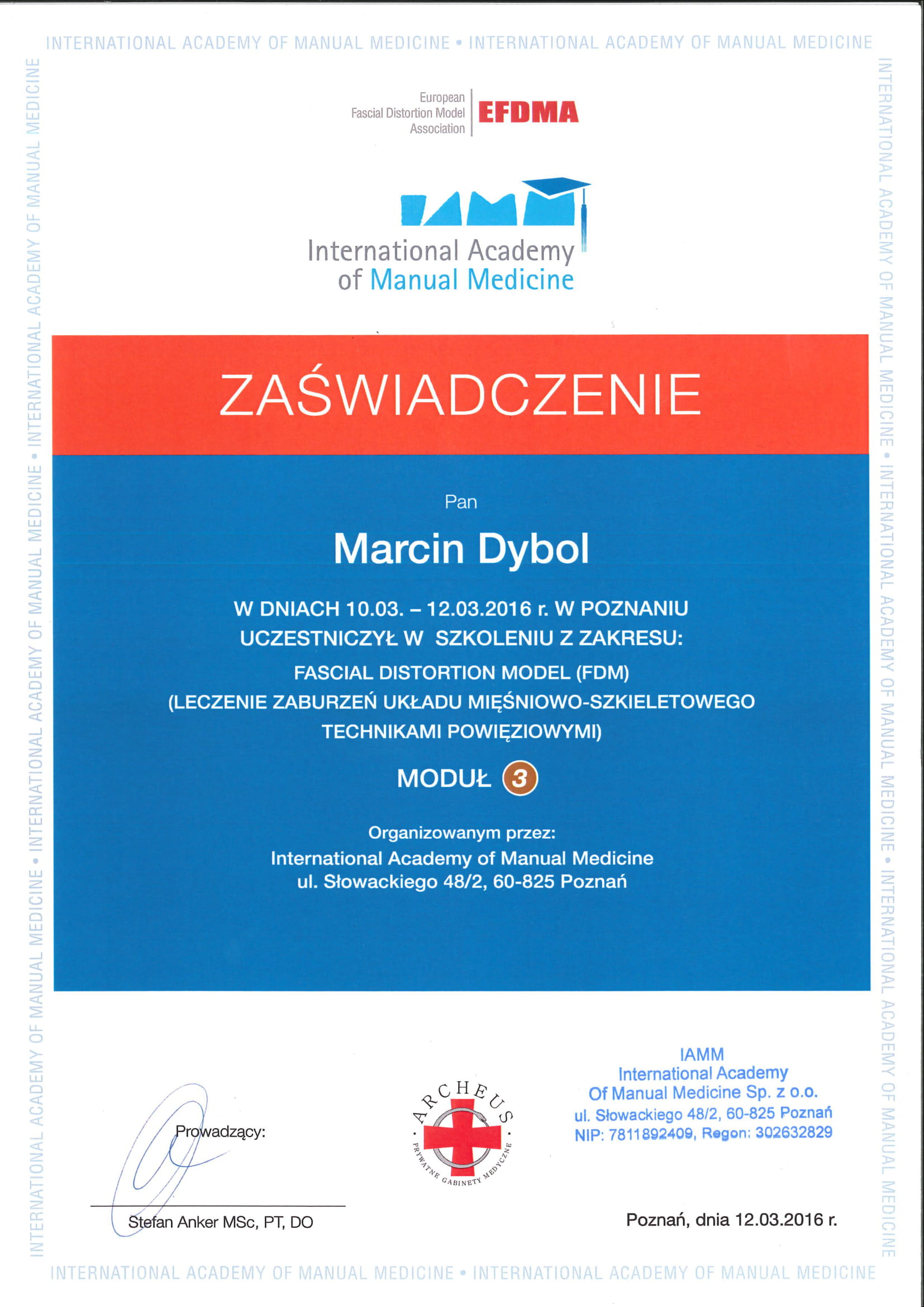 - 2016, 2015, 2014: Metoda Fasical Distortion Model, moduł I-III – zakończona egzaminem. Stefan Anker;